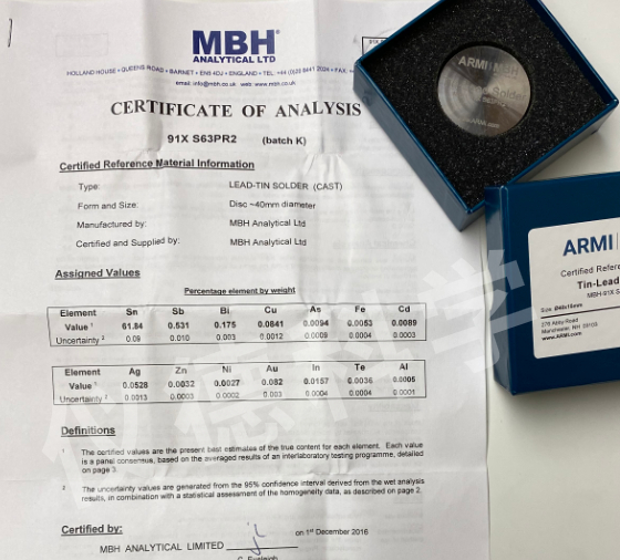 廣州儀德精密科學儀器股份有限公司標樣部專業提供全球著名光譜標準樣品,主要廠家有美國,英國,法國,德國,瑞士,波蘭,日本,加拿大等國優質光譜標樣,具權威性認證,帶認證證書,周期快現貨多,歡迎前來咨詢。標樣類別有:冶金標樣、有色金屬標準樣品、碳鋼標樣、中低合金鋼標樣、高合金鋼標樣、高溫合金標樣、精密合金標樣、銅合金標樣、鋁合金標樣、鉛錫合金標樣、碳素鋼標樣、比色鋼標樣、焊條鋼標樣、CS專用鋼標樣、低合金鋼標樣、合金結構鋼標樣、彈簧鋼標樣、軸承鋼標樣、不銹鋼標樣、高錳鋼標樣、硅鋼標樣、工具鋼標樣、高溫合金鋼標樣、生鐵標樣、鑄鐵標樣、合金鑄鐵標樣、工業純鐵標樣、鐵合金標樣、中間合金標樣、鐵礦石標樣、燒結礦標樣、磁鐵礦標樣、耐火材料標樣、爐渣標樣、煤標樣、焦炭標樣、鋁合金標樣、鉛基合金標樣、工業硅標樣、銅合金標樣、純鐵標樣、鑄鐵光譜、碳鋼、中低合金不銹鋼、高溫合金光譜、高純金屬。另有礦石粘土棕剛玉碳化硅焦炭煤等非金屬標樣、光譜標樣金相圖譜及純錫助溶劑、硅鉬粉、礦石原材料、耐水材料、爐渣、焦炭、煤、鐵合金等。歡迎咨詢!